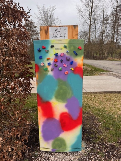Ter hoogte van de parking van Lieselogo stond een boeken(ruil)boom. Daar konden jullie naar hartenlust een boek geven en nemen. Met een pittige portie verdriet in onze trotse harten melden we jullie dat onze Boekenboom niet meer onder ons is..